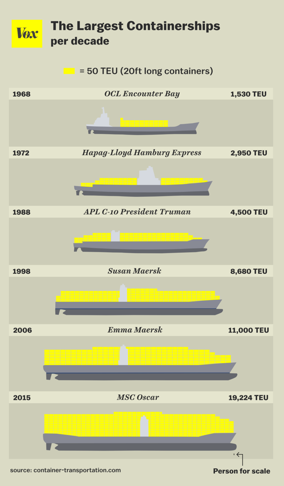 LARGEST CONTAINER SHIPS PER DECADE
